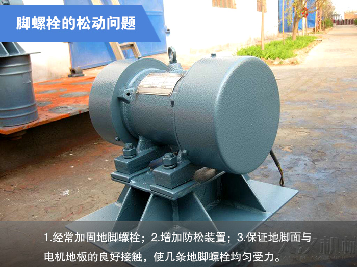 預防措施:1.選擇立式振動電機(即里面增加平面軸承);2.盡量避免垂直或傾斜安裝。